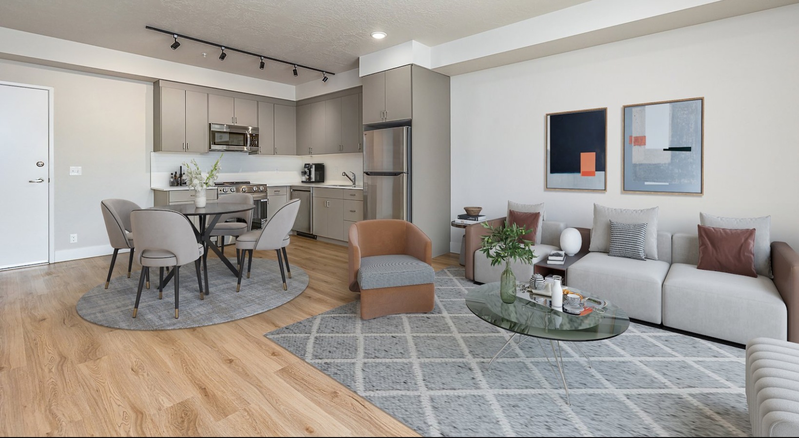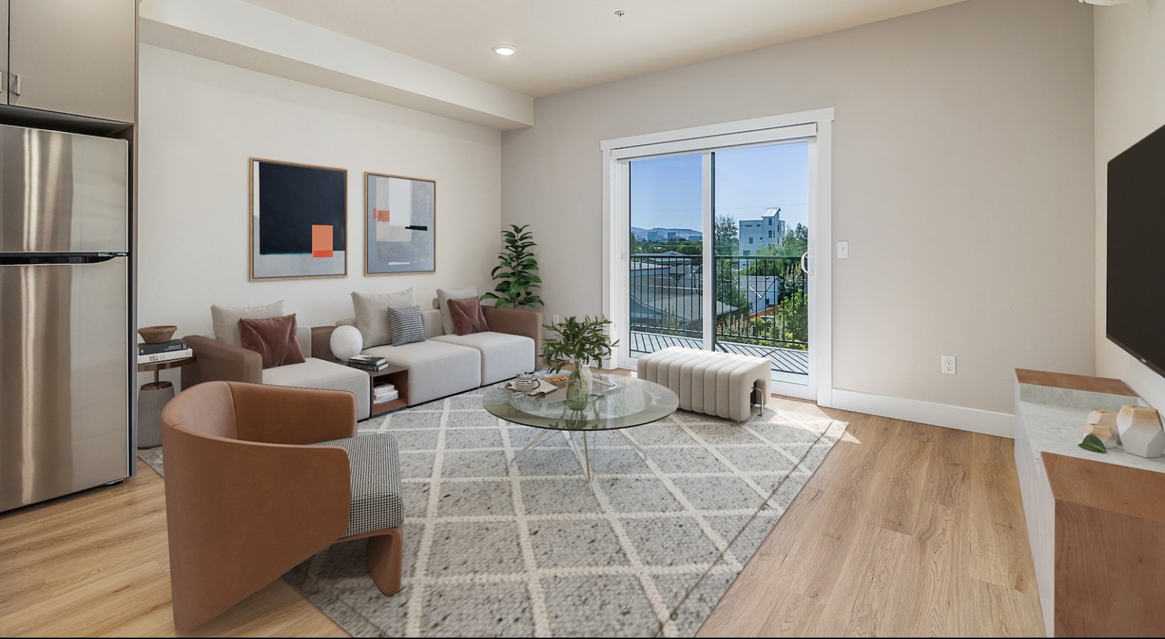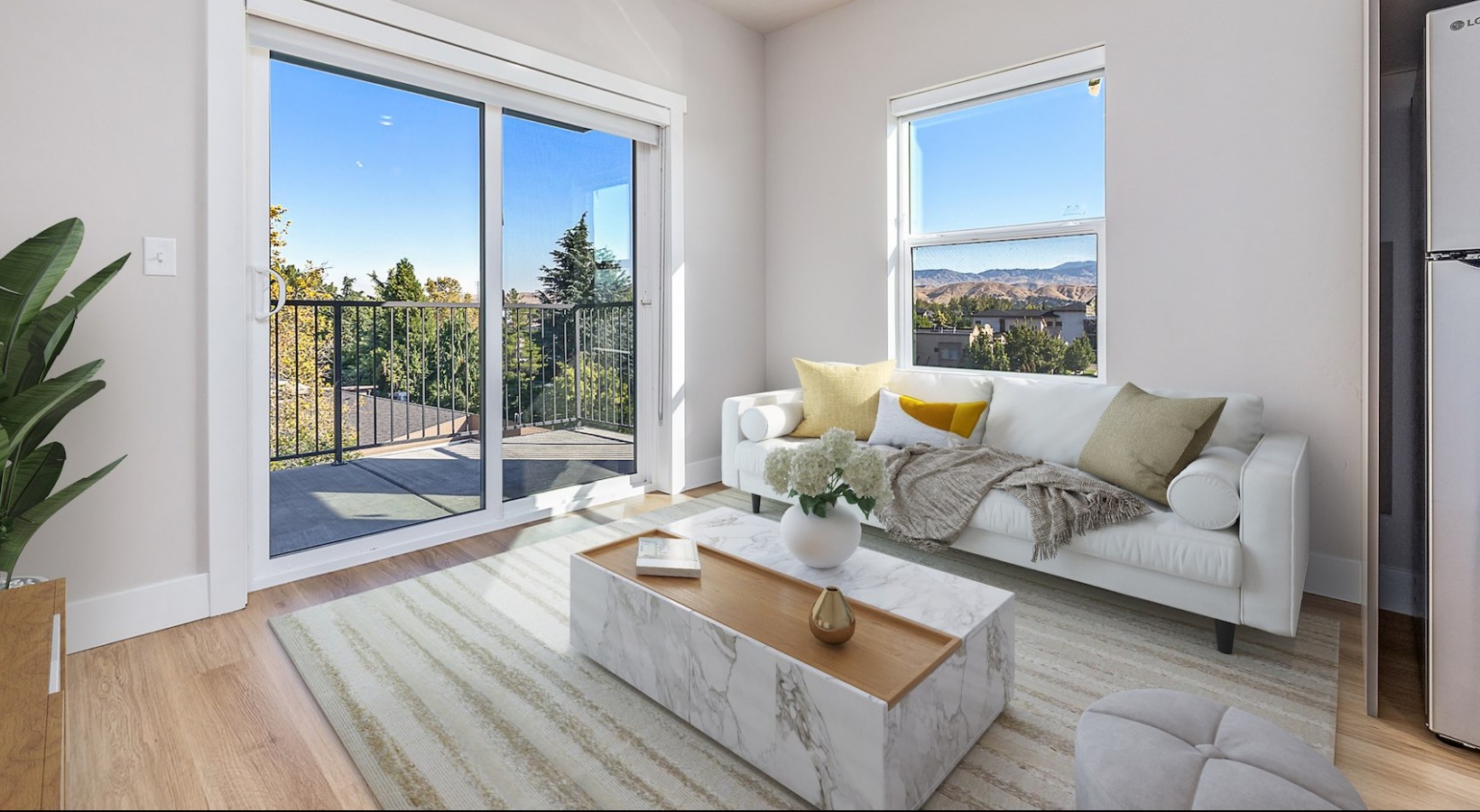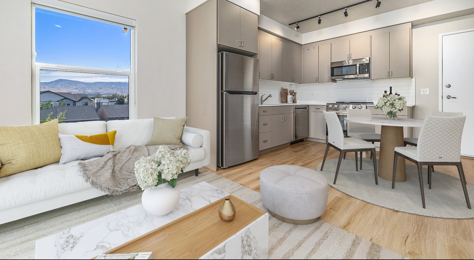 Open space living area with natural lighting in Garden City, ID