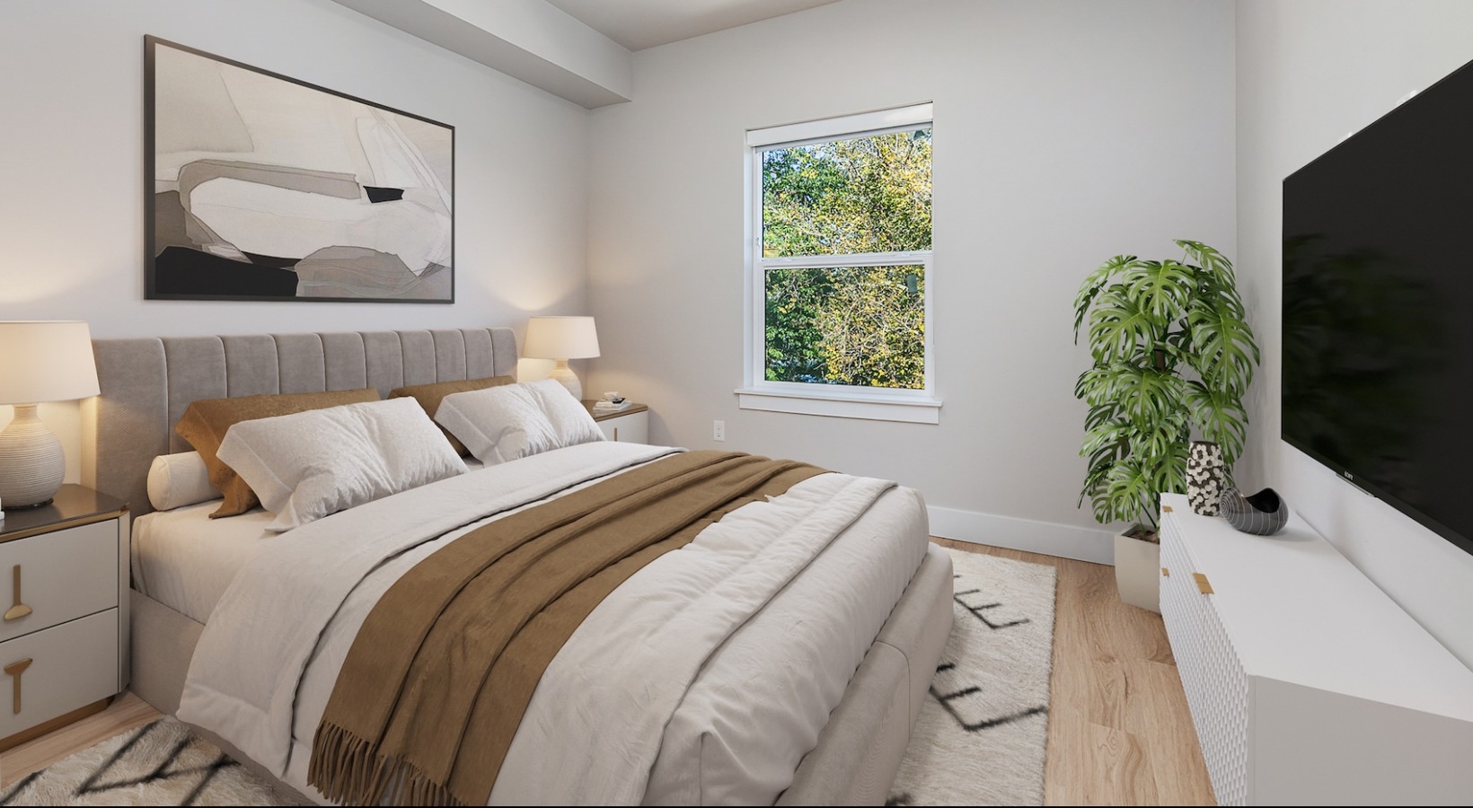 • bedroom with wood floors and natural lighting